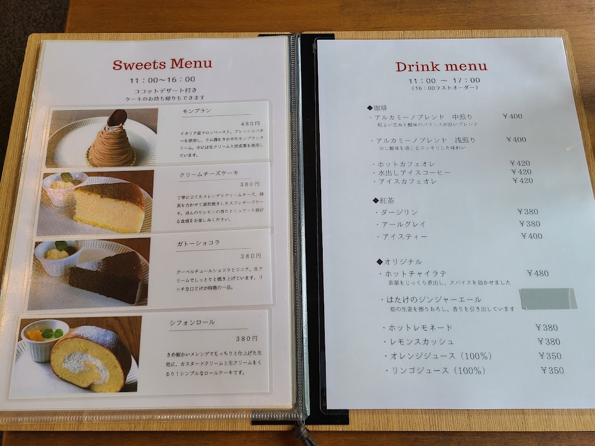カフェ&ギャラリー al camino Menu